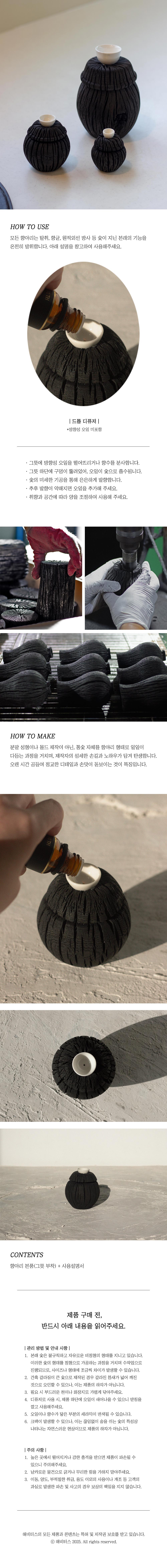 - 디퓨저로 사용 시, 제품 하단에 오일이 새어나올 수 있으니 받침을 깔고 사용해주세요.